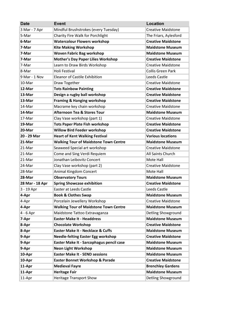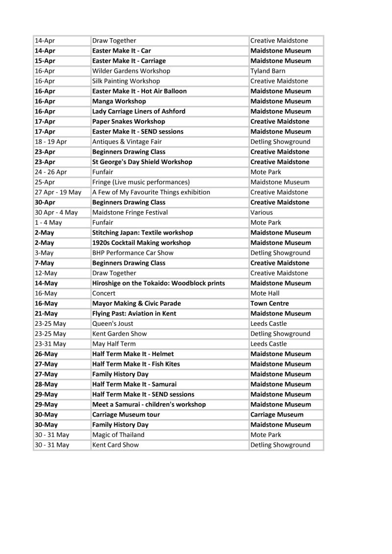 » Events in Maidstone - March to May 2026
