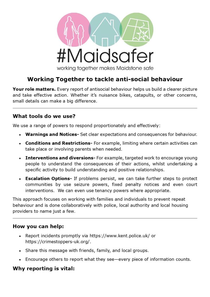 » #Maidsafer - Working together to tackle anti-social behaviour